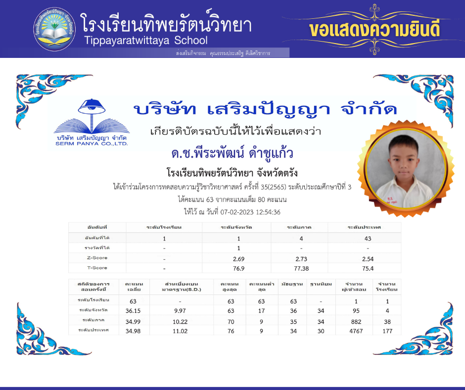 รางวัลและผลงานนักเรียน ขอแสดงความยินดีแก่นักเรียนคนเก่ง ด.ช.พีระพัฒน์ ดำชูแก้ว 07/02/202307/02/2023 admin Post Views: 60