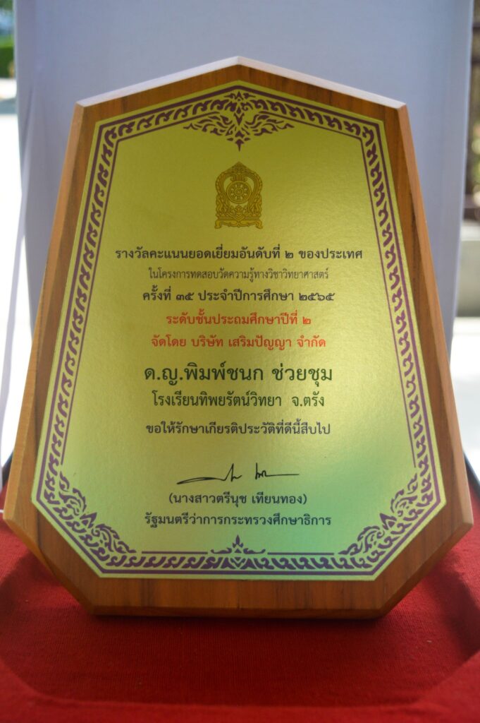 ประชาสัมพันธ์ รางวัลและผลงานนักเรียน ขอแสดงความยินดี เด็กหญิงพิมพ์ชนก ช่วยชุม ได้คะแนนยอดเยี่ยมอันดับที่ 2 ระดับประเทศ 11/07/202311/07/2023 admin นางสาววันดี จริงจิตร ผู้อำนวยการโรงเรียนทิพยรัตน์วิทยา มอบโล่รางวัลเกียรติยศ ของ นางสาวตรีนุช เทียนทอง รัฐมนตรีว่าการกระทรวงศึกษาธิการ แก่ เด็กหญิงพิมพ์ชนก ช่วยชุม ระดับชั้นประถมศึกษาปีที่ 2 #ได้คะแนนยอดเยี่ยมอันดับที่ 2 #ระดับประเทศ ในโครงการทดสอบวัดความรู้ทางวิทยาศาสตร์ ครั้งที่ 35 ประจำปีการศึกษา 2565 จัดโดย บริษัทเสริมปัญญา จำกัด Post Views: 55